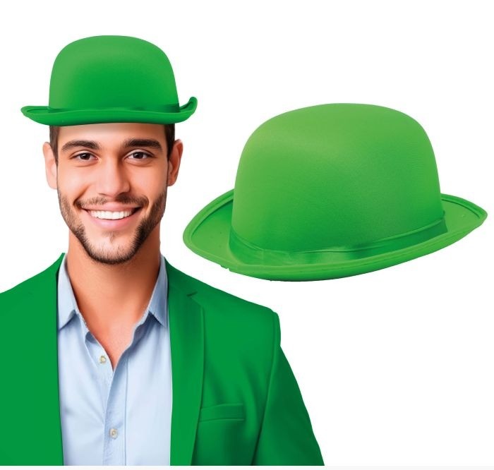 La bombetta verde satinata è un accessorio che non può mancare nell'armadio di ogni uomo che ama il buon gusto.