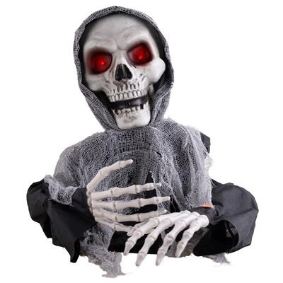 Scheletro da tavolo: muove le braccia e ruota la testa con musica spaventosa di sottofondo. Gli occhi rossi sono luminosi.