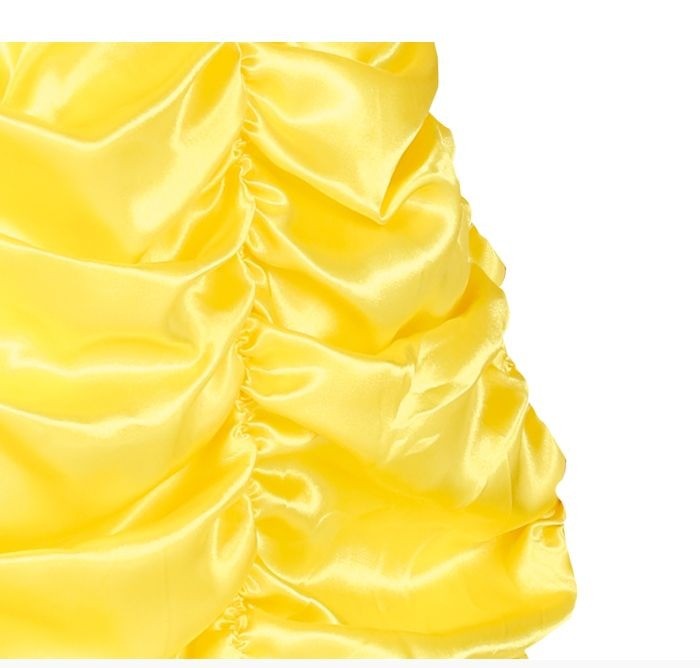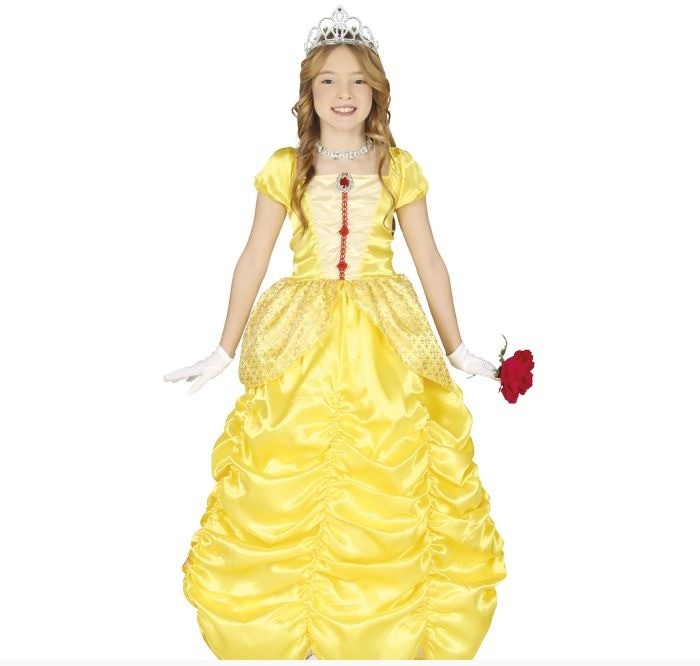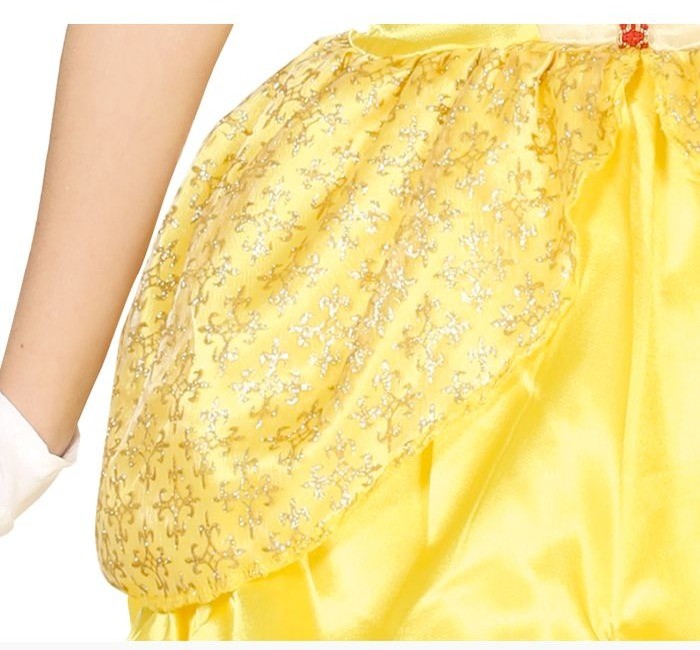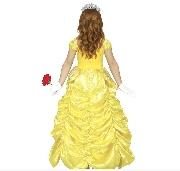 Il costume è accuratamente progettato per ricreare l'iconico look di Belle nel film "La Bella e la Bestia". Con un abito giallo a balze ispirato al suo vestito da ballo e dettagli raffinati come rose rosse e oro, questo travestimento cattura perfettamente lo spirito e l'eleganza del personaggio.