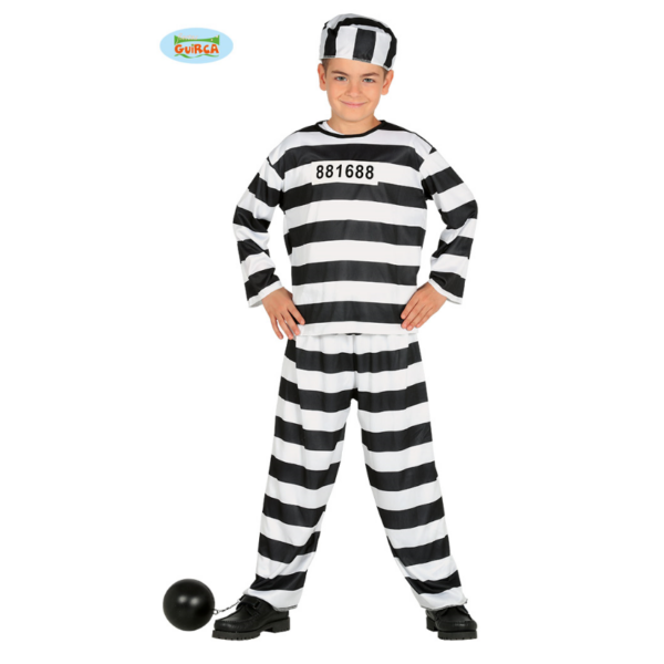 Costume prigioniero carcerato bimbo (cappello,maglia,pantaloni)