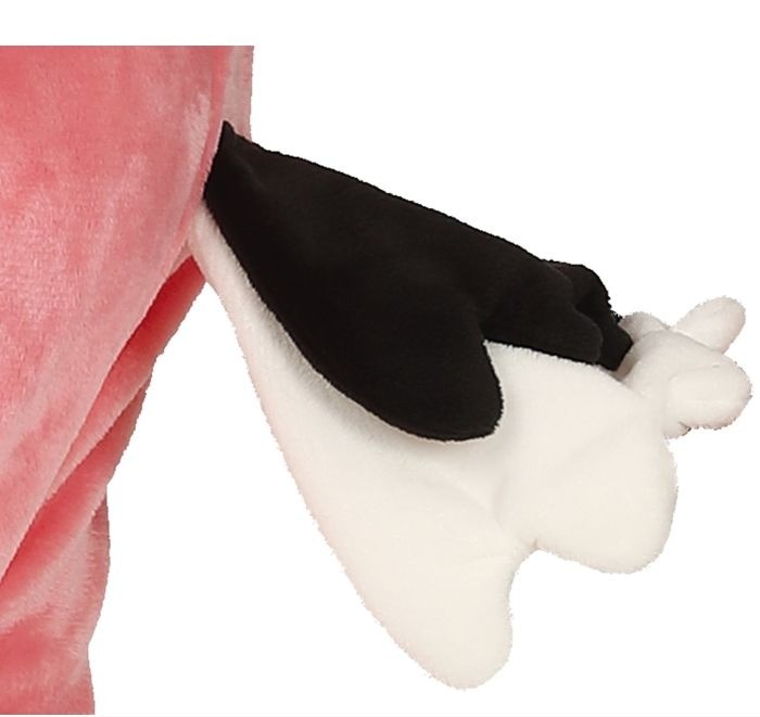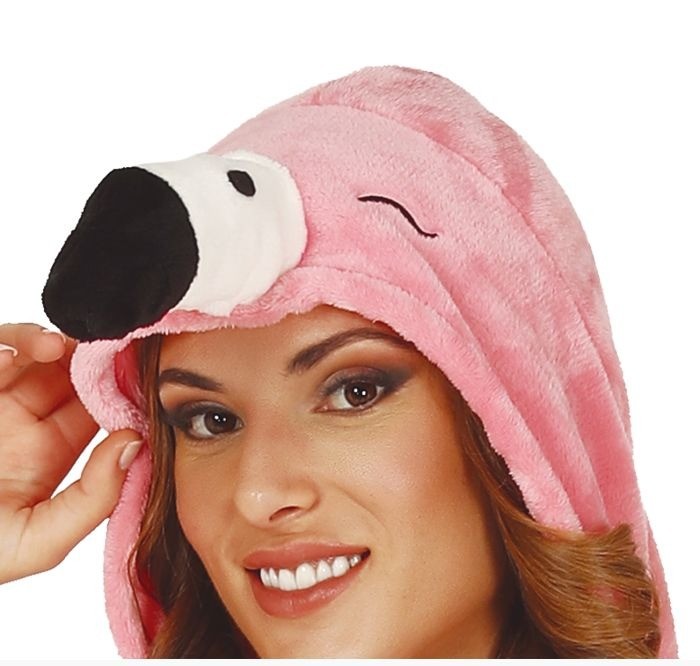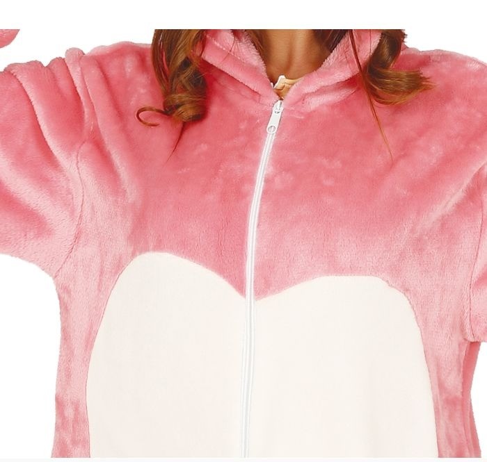 Il design del costume evoca l'eleganza graziosa e la bellezza esotica dei fenicotteri, con il suo colore rosa vivace e la silhouette affusolata. Il cappuccio a forma di testa di fenicottero e le ali sottili aggiungono un tocco divertente e distintivo al look complessivo, garantendo che chi lo indossa si distingua dalla folla con stile.