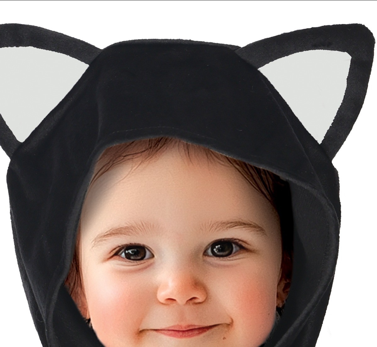 Costume poncho gattino baby, perfetto per Halloween, Carnevale e feste a tema. Morbido, comodo e adorabile, ideale per i più piccoli amanti dei micetti.