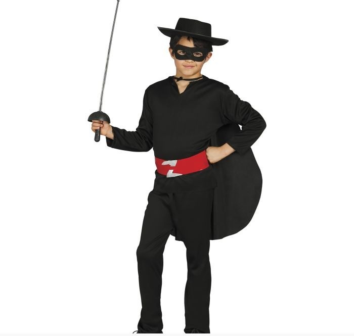 Il Costume di Zorro bandito da bimbo include cappello, mascherina, maglia,mantello, cintura e pantaloni