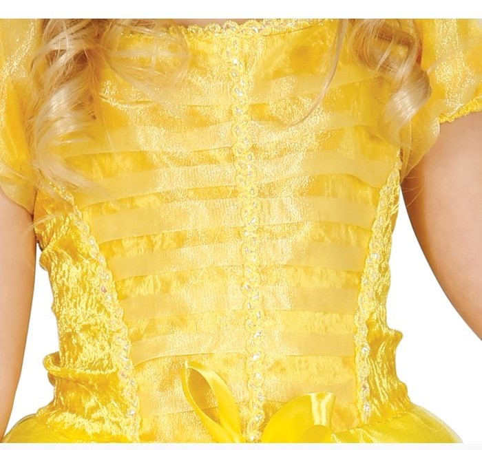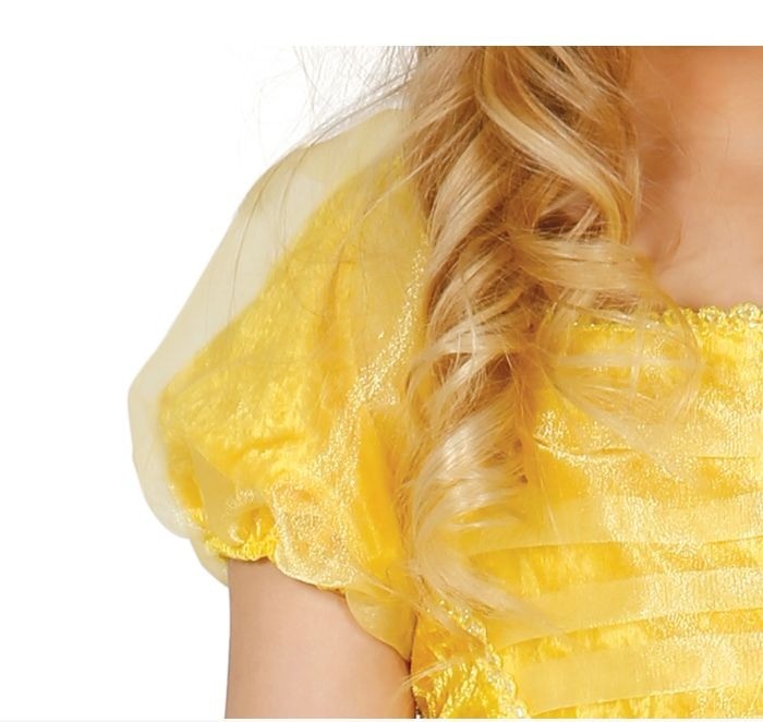 Il costume di Principessa Belle presenta dettagli accurati e tessuti di alta qualità, che catturano l'essenza del personaggio. Con un vestito elegante e luccicante, ispirato al famoso abito giallo indossato da Belle nel film, il travestimento offre un look regale e affascinante. I dettagli come il corpetto decorato, le maniche a sbuffo e la gonna ampia conferiscono al costume un tocco di magia e raffinatezza, proprio come nella storia originale.