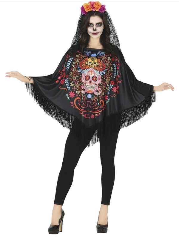 Il Poncho Día de los Muertos è l’accessorio perfetto per celebrare questa tradizionale festività messicana con stile. Con colori vibranti e motivi festivi, questo poncho è ideale per le festività del Día de los Muertos e altre occasioni speciali.
