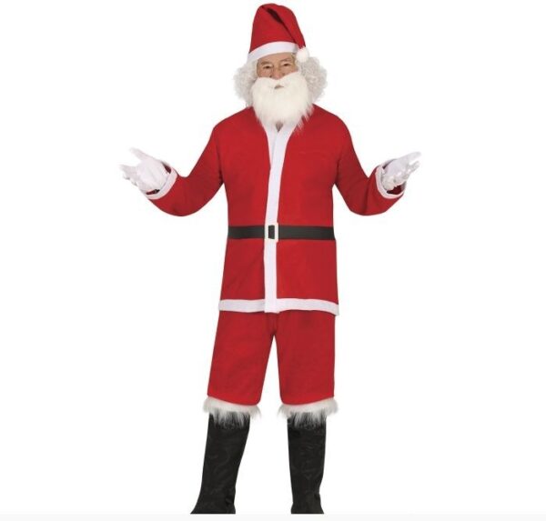 Il Costume da Babbo Natale adulto unisex è composto da: giacca, pantaloni, cappello in pannolenci rosso, barba bianca e cintura nera. taglia: L (unica)