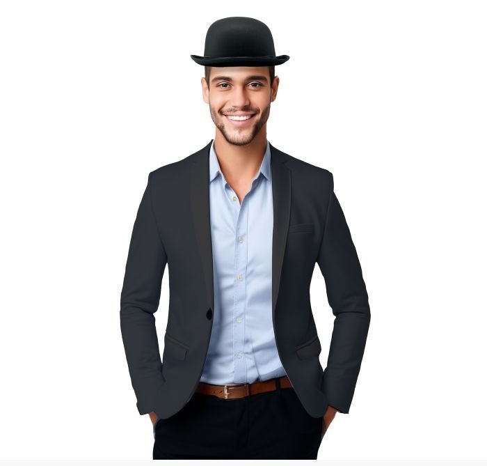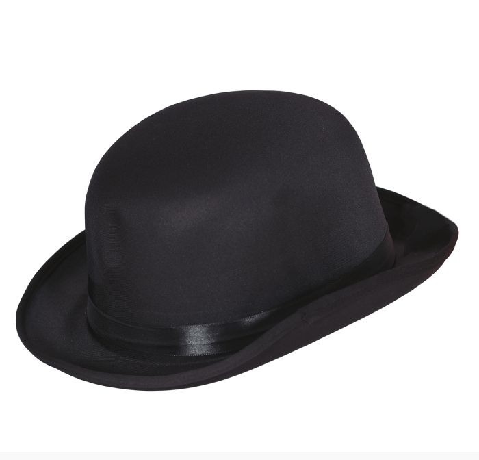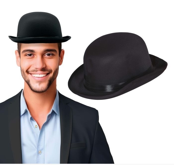 Bombetta satinata in raso nera adulto Charlie Chaplin con elastico interno per adattarsi a varie misure.