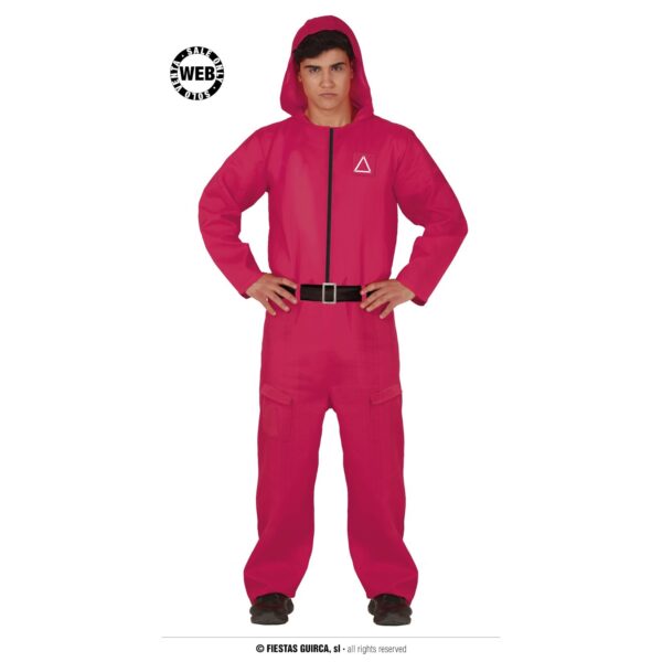 Il costume da Guardia di Squid Games per uomo include: tuta con cappuccio con patches intercambiabili. Disponibile in 4 taglie: S, M, L, XL. Il materiale è 100% Polyester Ignifugo. Per essere un vero personaggio di Squid Game!